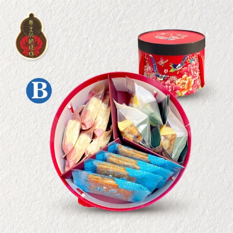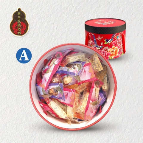 A款 夏威夷豆牛軋糖130克 南棗核桃糕130克 花生芝麻糖150克 B款 椒麻牛軋餅*4 夏威夷豆塔*3 手工琥珀餅*5